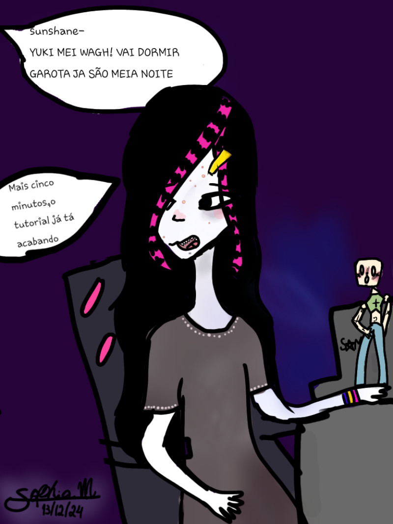 Yuki estava vendo um tutorial mais sua irmã fala para ela dormir