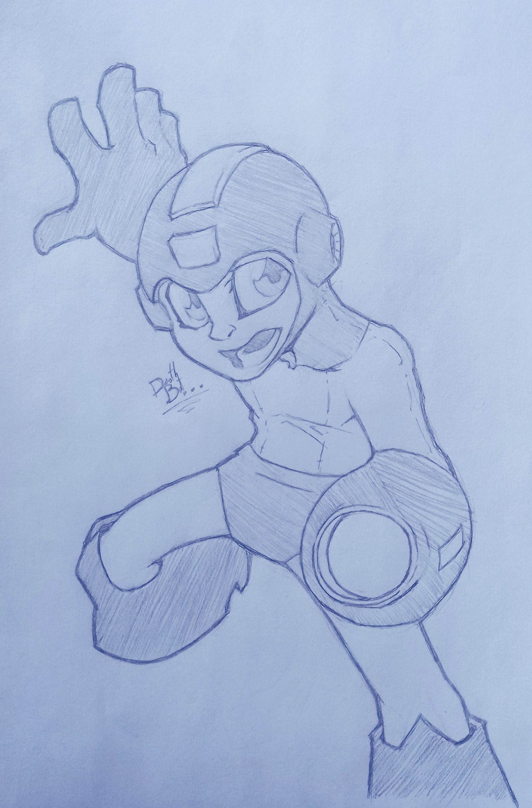 Desenho simples do Mega Man que fiz enquanto estava entediado, achei que ficou legal então decidi postar, vai na folha mesmo pois não tô afim de passar pro digital.