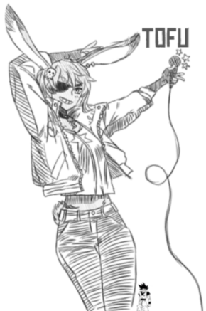 Essa é a Tofu, uma personagem de um amigo meu, resumindo bem brevemente, ela é tipo uma Coelha Cantora Zumbi (Que mistura interessante, né?).